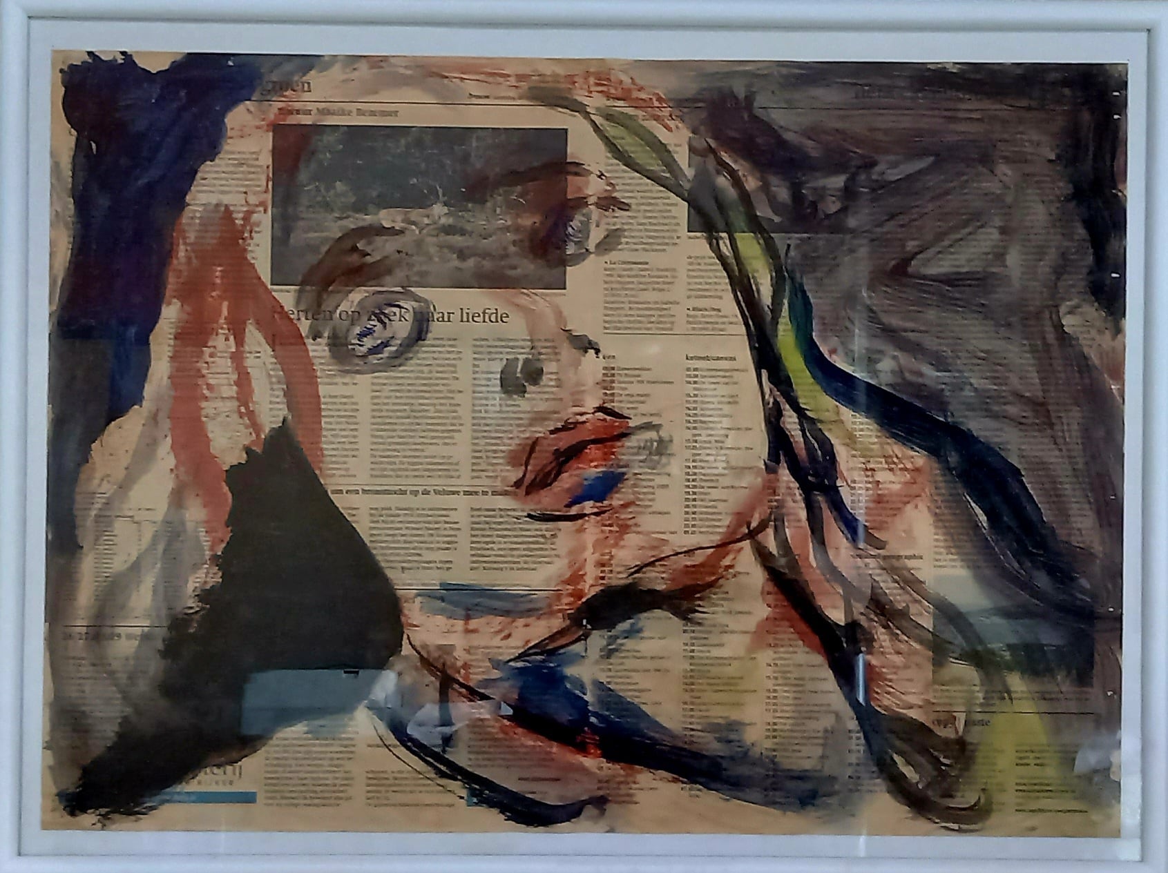 新聞紙に油彩