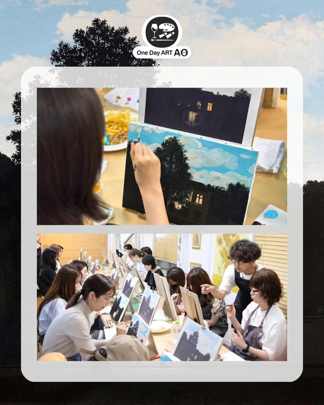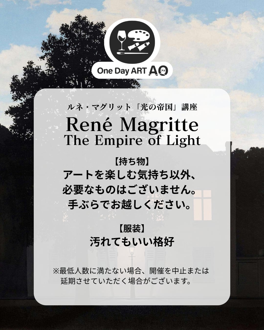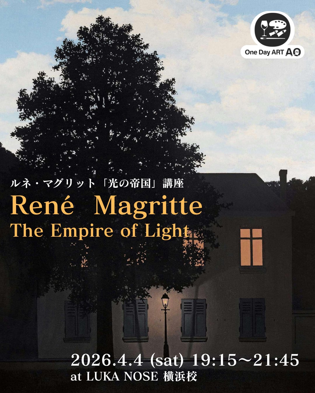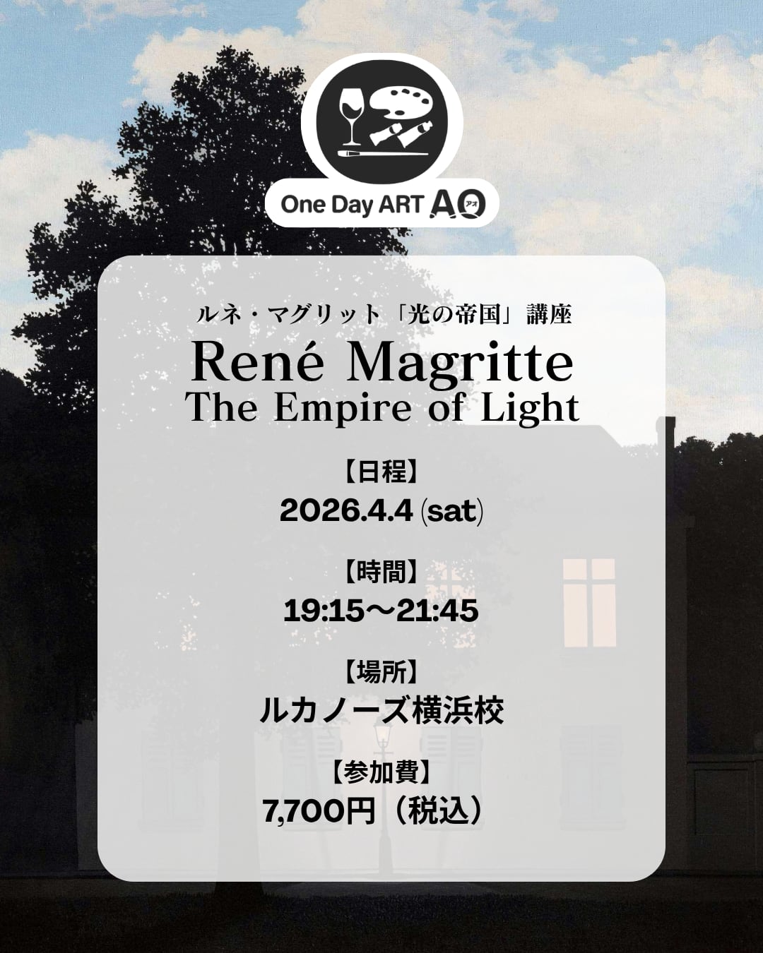 4/4(土)19:15~21:45【ワンデーアートAO】ルネ・マグリットの「光の帝国」を描こう! in 横浜校